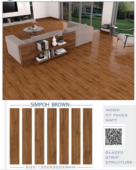 Simpoh Bnown - 200*1200 Gạch vân gỗ men matt Ấn Độ