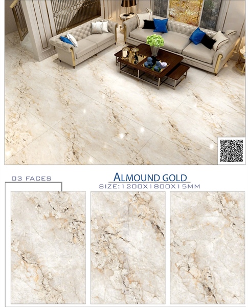 Almound Gold - 1200*1800 Gạch siêu bóng thạch anh nung kết dày 15mm Ấn Độ 1v/t