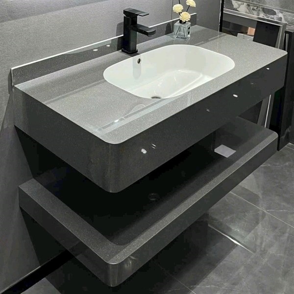 Chậu bàn đá Bo góc 2 tầng xám